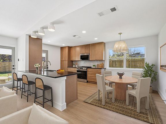 Welcome to 10424 Quail Ridge Dr, a fully updated single-story corner-lot home in the highly sought-after Quail Creek neighborhood of North Austin. This 4-bedroom, 2-bath, 1,460 sqft home is designed for modern living, just minutes from The Domain’s shopping and dining and the excitement of Q2 Stadium. Inside, you’ll find beautiful new LVP flooring throughout the main living areas, plush new carpet in all bedrooms, fresh texture throughout, new baseboards, casing, and doors, and a bright open living space featuring a cozy fireplace. The kitchen is a showstopper with new cabinets, sleek black granite countertops, stainless steel appliances, and updated lighting and plumbing fixtures throughout. Both bathrooms have been completely refreshed with designer tile, elegant tub surrounds, new vanities with quartz countertops, and stylish lighting and plumbing fixtures. Major updates include a new roof, new HVAC, new water heater, and new windows, ensuring worry-free living. Outside, enjoy a covered back patio perfect for entertaining, a new concrete driveway, power-washed brick, and enhanced landscaping with fresh mulch, plants, and grass. With updated paint inside and out, new lighting, doors, and plumbing fixtures throughout, this home is truly move-in ready, combining luxury, functionality, and a prime North Austin location.