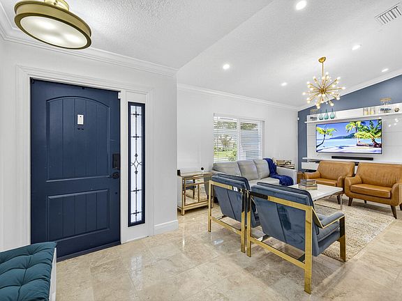 A Perfect Blend of Modern Elegance & Effortless Comfort.Welcome to a residence where thoughtful upgrades, refined design, and smart technology come together to create a lifestyle of sophistication and ease. This beautifully updated home showcases quality craftsmanship and exceptional attention to detail inside and out.From the moment you arrive, you'll appreciate the privacy wall and paver-lined driveway that frame the home's elegant exterior. The 2019 roof and impact windows ensure peace of mind, while the covered gutters and Trane 4-ton A/C (installed 2023)--professionally serviced by Hi-Vac and controlled directly from your phone--add convenience and reliability. Step inside to discover an inviting interior adorned with travertine flooring, quartz countertops, and custom accent walls that elevate every room. The home's ambiance is enhanced by modern lighting fixtures, including a unique illuminated table, and wood-paneled ceilings that add warmth and dimension. All closets feature fitted, soft-close systems, and every detail from the baseboards and crown molding to the pull-out storage solutions in the bathrooms and laundry room reflects thoughtful design and practicality.