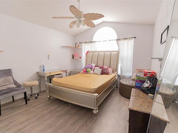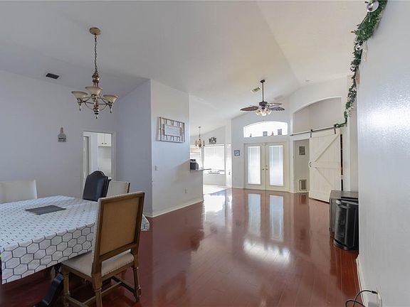 Check out this solid 2003 block/stucco home featuring 3 beds, 2 baths, 1,724 sq ft, a 2-car garage, and a brand-new 2024 roof. The high ceilings in the living/dining area instantly open up the space, and the home is upgraded with custom barn doors, modern light fixtures, laminate flooring, and built-in shelving. The kitchen and bathrooms have Corian countertops and tile flooring, with plenty of space for family meals in the dining area, breakfast bar, or cozy kitchen nook. The master bedroom includes luxury vinyl flooring and a full en-suite with dual vanities, garden tub, and glass shower. Additional bedrooms also have updated flooring with a shared bath between them. Inside laundry, gas dryer, and gas stove included. Enjoy the outdoors under the large covered patio, with a vinyl-fenced backyard perfect for privacy and pets. Located in the gated community of Stonegate at Silver Lake, you’re just minutes from shopping, restaurants, boating, fishing, and more. Neighborhood features include high-speed internet, a community pool, playground, and clubhouse. This home has great potential and is priced to sell. Schedule your showing today!