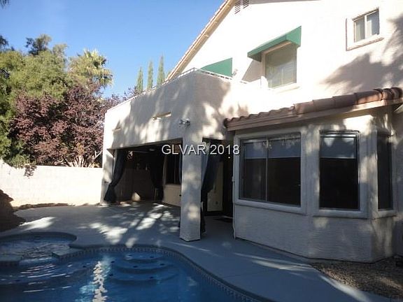 Summerlin, 5 bdrm/3.5 bath/3 car w/den, pool & spa. Upgraded Galore w/gourmet kitchen, high end appliances, new paint & carpet, Hunter Douglas curtains, roman blinds, custom bookshelves in family rm & den. Awnings on mstr bdrm bath and balcony. Custom mesh curtains on covered patio, overlooking your newly re-plastered pool & spa, new decking and pool lights. New upstairs AC & Water heater installed NOV 2018.