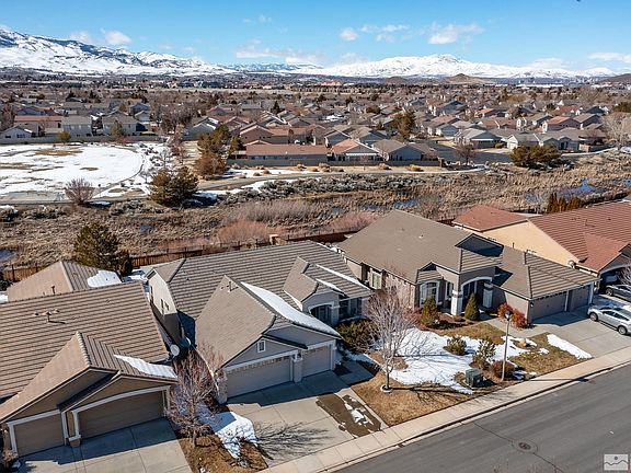 Unobstructed mountain views and fantastic location with no back yard neighbors. This single story, 1778 sqft property, was built with 2x6 framing, has a 3 car garage, 3 bedrooms, 2 full bathrooms and is positioned east/west to enjoy sunsets in the backyard that perfectly face the Sierra Nevada mountains. The backyard is fully finished with a low maintenance yard, drip system, pavers and shade screens attached to the covered area., While you're outside you will see people enjoying the public walking/bike path and Center Creek Park as well as many birds and wildlife. The property has been updated with Brazilian cherrywood floors throughout the house with the exception of tile in the bathrooms and linoleum in the laundry room off the garage. The washer and dryer are not included in the sale of the property, however, the kitchen appliances do convey as well as the plantation shutters on all windows, cabinets and shelving units within the garage. This property is also within a 6 minute drive to all major destinations, including: Renown Hospital, Home Depot, Safeway, Walmart and various other shops and restaurants. It's a great property ready for new owners.