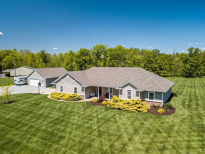 Everything you need all in one private oasis. This home features acreage, pool, stocked pond, guest quarters, abundance of storage, garden, one level living...all the things you need and can add to that will keep you self satisfied during these unpredictable times. You will love having two family rooms, four seasons patio, sun deck, an oversized two car garage plus a 40 x 30 detached two car garage. The guest quarters feature a studio style apartment that has a kitchen, bathroom and separate washer and dryer space. If you go hunting there is no need to use the main house washer and dryer. Your no traffic commute is just 7 miles from 63 and less than from I-70. There is something for everyone at this house.