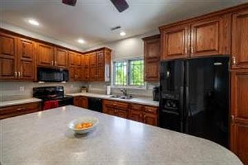 - Kitchen/Features: Cabinets-Custom Blt, Dishwasher-Built In, Garbage Disposal, Island, Microwave Oven, Refrigerator, Vent Fan, Cabinets-Wood, Counter-Laminate, Range-Electric, Pantry