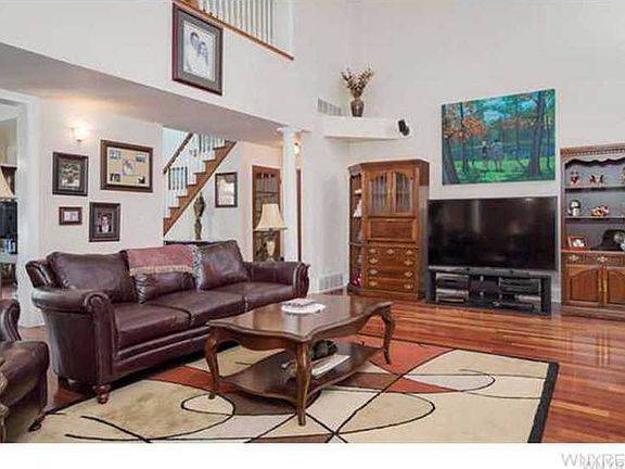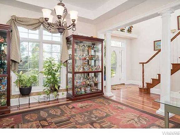 Spectacular estate setting on 37 luxurious acres w/fabulous pond,snow mobiling paths,& backing up to Clarence walking path.This custom home is over 4000sqft w/10ft ceilings,2x6 construction,in ground heated pool & waterfall,finished walk-out lower level w/media rm,41x16 game rm,gas fireplace,19x13 sitting rm & full bath & new exquisite floors.1st fl master suite w/new carpeting,gourmet cherry kitchen w/granite & stainless appliances,Brazilian cherry flrs on most of 1st,trex decking,vinyl fencing around pool.Also the 4th bed incl a 19ft add. exercise rm. Horses permitted & zoned agricultural.