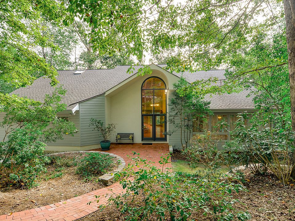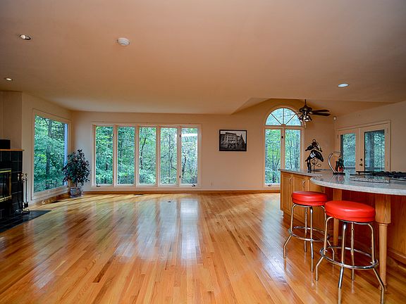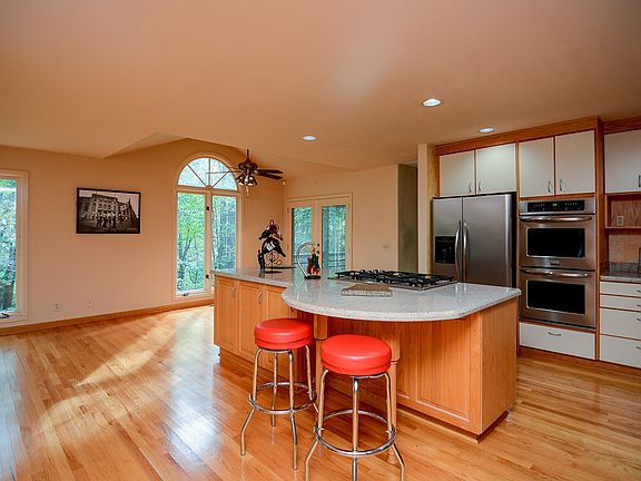 Custom contemporary home overlooks the wooded backyard & stream. Inside includes 4 beds, 3.5 baths, & 4306 sq. ft. w/ HARDWOOD oak floors, FORMAL DINING, & 2 FIREPLACES. The eat-in kitchen includes quartz, island, SS appliances, double oven, & gas cooktop that overlook the great room w/ built-in shelving. The master w/ vaulted ceilings includes large walk-in shower separate JETTED tub. The lower level has a large bonus room, great for entertaining, office & WINE CELLAR all on just over 1 ACRE for privacy.