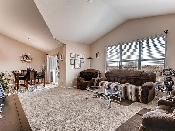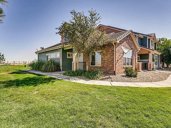 Amazing opportunity! Large, 3 bed 2.5 bath end unit condo with mountain views in a quiet setting. Main floor master, covered front porch and private patio. Open floor plan with large great room has lots of natural light. Spacious kitchen with wood cabinets and pantry opens to the large living room area. Dining area off the kitchen leads to private patio for grilling/entertaining. Master bath on main level boasts shower, dual sinks and walk-in closet. Two upstairs bedrooms share a second full bath. Large bonus room upstairs with more mountain views; lots of possibilities! All kitchen appliances included. 1 yr. home warranty provided. Close to I-25, Reunion, lots of restaurants & shopping! Will go fast!