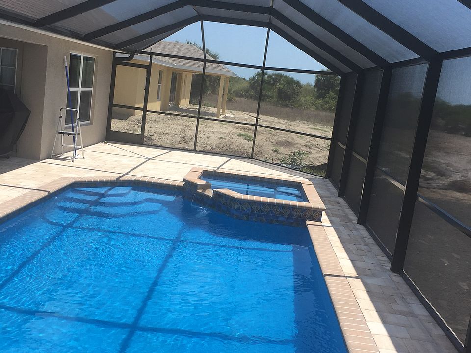 - Pool features: Heated, Salt Water, Solar Cover, Screen Enclosure, In Ground, Gunite, Lighting