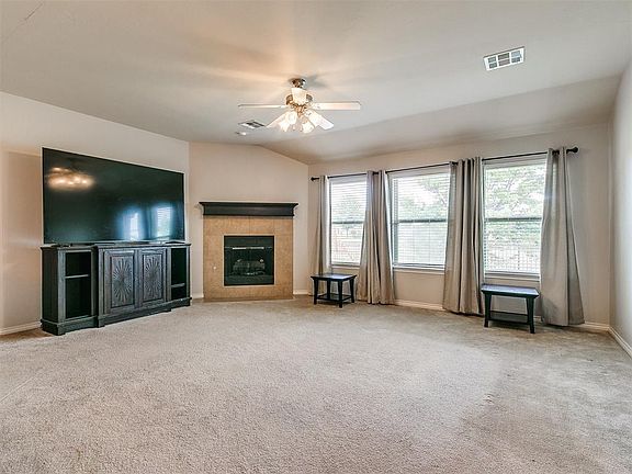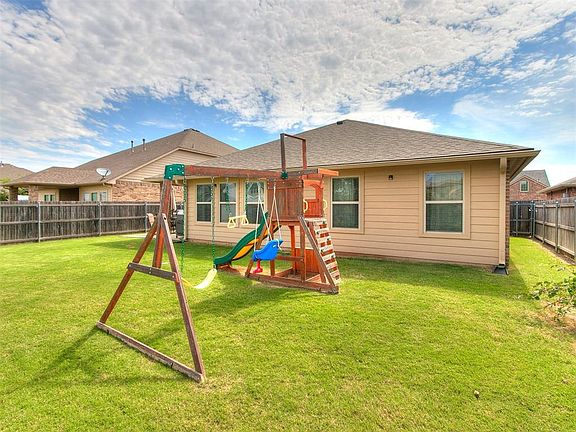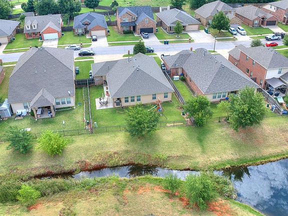 Make plans to visit this wonderful home with 1760 SqFt, 3 bedrooms, 2 full baths, 3-car garage & lovely, open floor plan. Lovely formal entry. Large living room with large windows & fireplace. Open kitchen with island, breakfast bar & large panty. 3-Car garage with in-floor storm shelter. Fenced backyard with lovely covered patio, extended patio & greenbelt/pond view. New roof & gutters: 2023, new exterior paint. $5,000 credit for carpet replacement or closing costs, though the current carpet can be easily steam cleaned. Pet free. 2 refrigerators to stay (not deep freeze). Home will be professional cleaned at closing. 2 windows being replaced. This home is lovely & won't last long. Piedmont Schools!! Make plans today!!!!