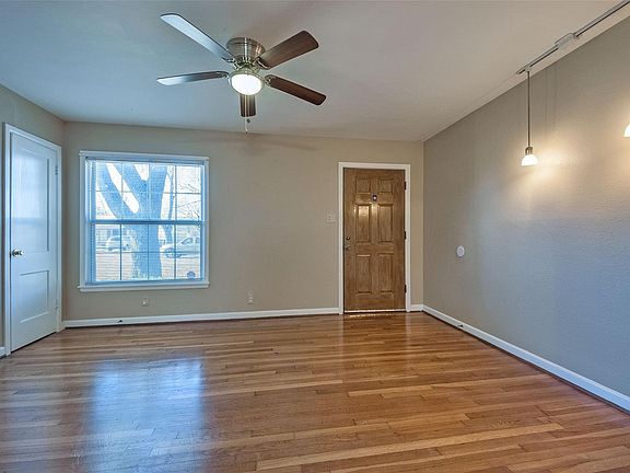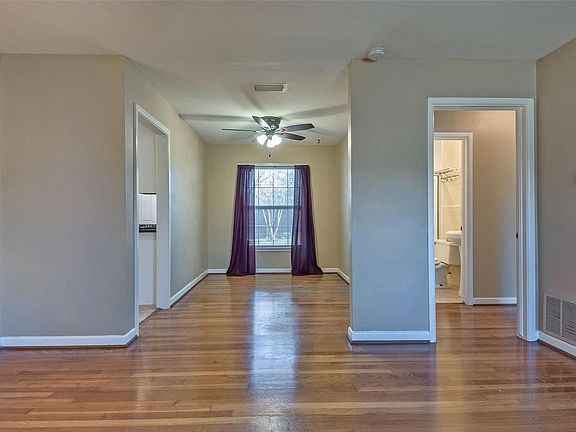 Cozy, tree-shaded brick bungalow. This home features an upgraded kitchen and bath. The kitchen has stainless steel appliances, gas range, granite countertops and Shaker-style cabinets. The bathroom has an American Standard tub and shower insert. Hardwood and tile floors. Fans. Central Heat and Air. Attached one-car garage. Huge fenced, shady backyard. Located near bus line and schools. Nearby shopping center recently underwent major renovation. Full-sized washer and dryer in the garage, and the refrigerator are included in the lease. 2025-09-24