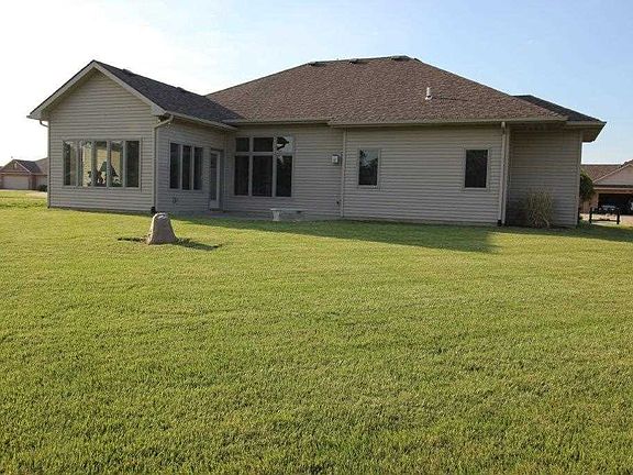 Wonderful Villa, beautiful pond views, many well designed high quality features, beautifully maintained, located in a quiet neighborhood. The open layout is perfect with large rooms, built with handicap access in mind, 10 foot high ceilings, surround sound, hardwood floors and gas fireplace. Custom hickory cabinets with raised panel ends in kitchen and baths. Trey ceilings, solid doors, large windows, lots of natural light. 4 season room has panoramic views. Master shower has a low step curb. 1,805 Sq Ft, 2 Bedrooms, 2.5 baths. All Kenmore kitchen appliances are included as well, Samsung Washer and Dryer. Big 725 Sq Ft garage with floor drain and hot and cold water. Built in 2005 by the craftsman of Niemeyer Builders. Upgraded crown and baseboard trim package. Whole house fan. 200 Amp service. Blinds included. Home is serviced by city sewer and well water that is treated by the included water softener. Low $90 monthly dues cover lawn care and snow removal.