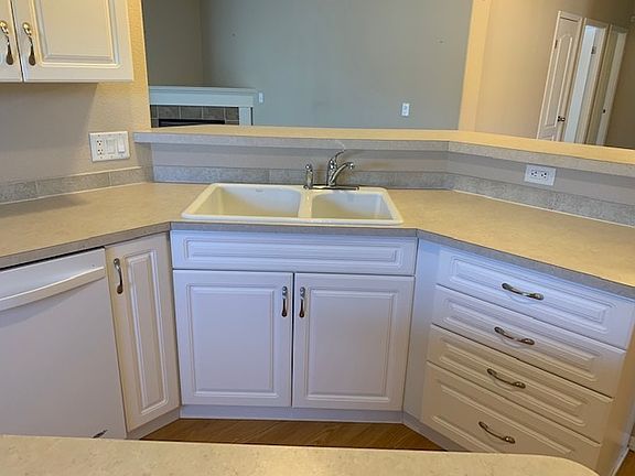 Very nice 2007 Moduline triple wide. 1863 sq. ft. 3 beds/2 baths. Formal living room + family room w/ gas fireplace. Large white kitchen w/step in pantry, island, eat bar. Dining area. 2 car insulated & finished garage w/opener. A/C, gutters, professional landscaping w/ sprinklers front & back, concrete curbing. Covered oversized trex deck. Gated community, clubhouse, RV storage available, Lease is assumable or a new 35 yr. lease is available. New lease is $420 +$99.15 for water/sewer/gar.