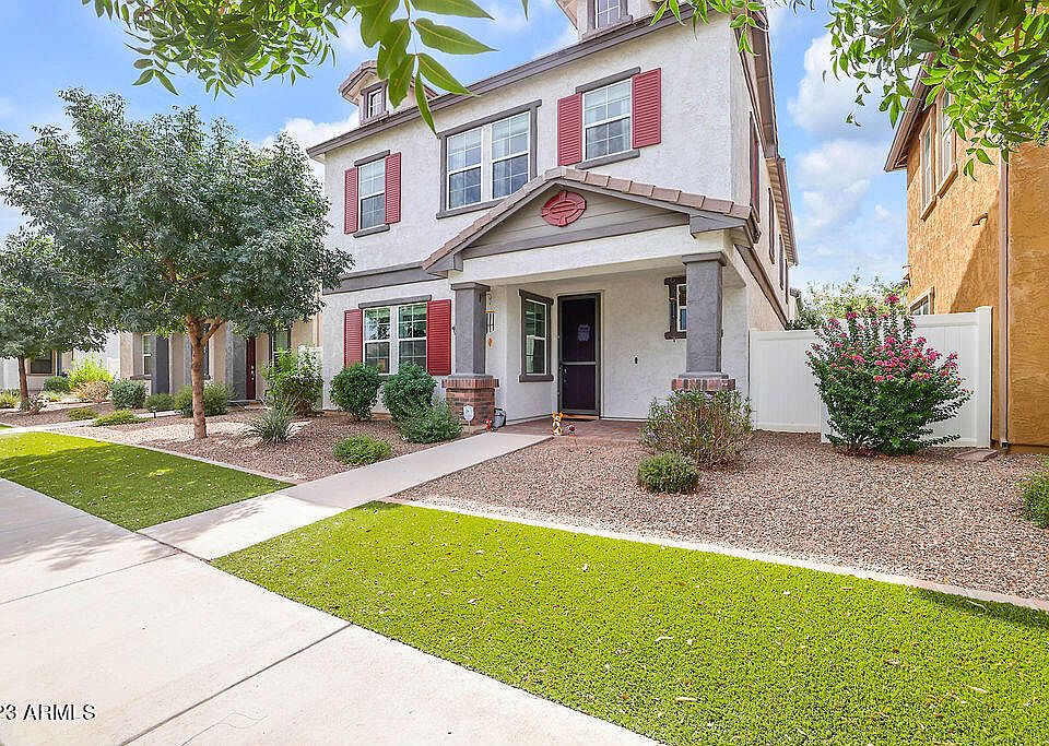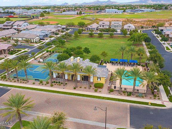 Come see this move in ready home with tons of upgrades in the prestigious MULBERRY Community! Upgraded tall white cabinets, larger wood plank tile, granite countertops, large granite island, tall doors, newer stainless steel appliances, tons of storage, artificial turf, epoxy garage floors and so much home! The Mulberry neighborhood provides access to the the pool, fitness center, tennis, pickleball, basketball courts, indoor terrace & playground. Front yard maintenance is included! East Mesa is an attractive place to live, work & have fun. Shopping, golf courses and dining all close by! Move in ready!!
