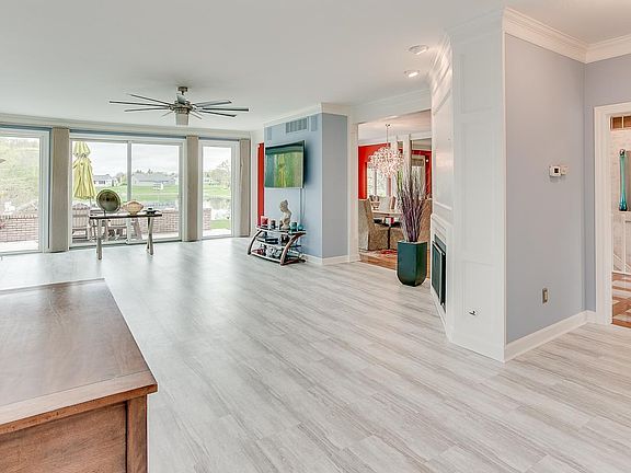 Welcome home to your ALL brick Pine Valley ranch that is anything but ordinary. From your grand front porch you will enter into a tile and wood foyer floor, that flow into the hardwood floors that run through a large part of the home. From the foyer you will see the bank of windows that looks out on a pond and provides a wonderful backdrop for the statement making dining room. You know that crazy, over the top chandelier that you would love to have but wouldn't spend the money on? Well, it's about to be yours. To your right behind a pocket door you will find a cozy, comfy, bookshelf lined den with a fireplace. To the left is your main living room that is light and bright thanks to the 3 transom windows on the south wall, the grey toned luxury vinyl plank flooring and the floor to ceiling windows that flank the large slider that leads to the patio. Tucked off the east end the room is a reading nook/office and a full bath. Around the corner you will find your informal dining area with a bank of windows looking out on the pond, a door out to the patio and a front seat to your amazing kitchen. Beautiful granite countertops, tile backsplash, vented stainless hood, stainless appliances and an abundance of painted cabinets, many with pull out shelving. Down the hall at the back of the home is your large main ensuite with 2 separate closets and a spa worthy bathroom. The laundry room is located in the hallway, on the main floor, has lots of cabinetry and a a folding counter. The additional 2 bedrooms are in the north corner of the home with a unique reverse Jack and Jill set up. The bedroom hallway also has a door into that delightful den. The stairway to the lower finished living space is off the foyer which presents you with a wonderful variety of options... A large 2nd living space, a den used as a bedroom, an entertaining area, 2 LARGE storage closets, full bathroom, a small kitchen set up and your 3 car garage. The garage also has a great storage room. Absolutely everything in this home from the expensive custom Hunter Douglas blinds, the granite counters, central sound system, custom cabinetry and hardwood floors point to the quality and a home that was filled with joy. HVAC dual system in 2014 with 10 year warranty. 50 gallon gas water heater 2014. Complete roof tear off in 2017. Because this is an estate the home is being sold As-Is, addendum is attached.