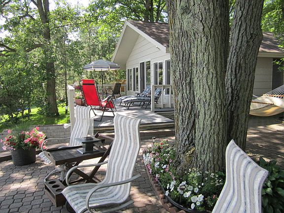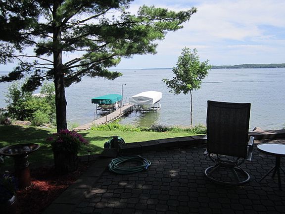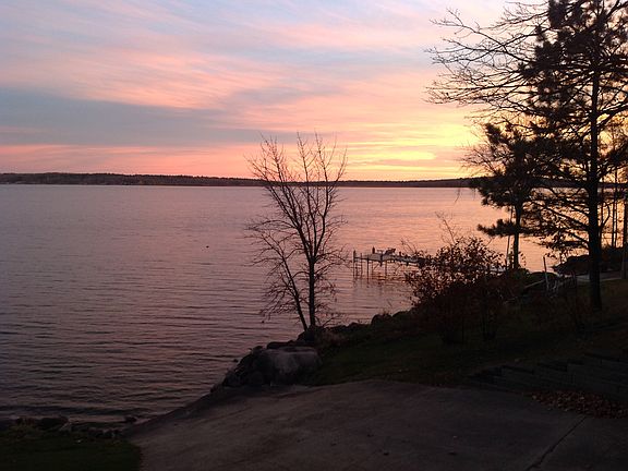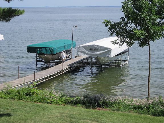 One main level with and attach 2 car garage, 3 bedrooms, 1 full and 2-3/4 baths, 3 fireplaces (2 insert fireplaces in the main level and a wood fireplace in the lower level), plus a sauna off the 3/4 bath in the lower level. Also there is a long hall and an attached boat garage with outside access in the lower level. We remodeled the living room in 2011 and added new carpet, a tongue and groove knotty pine ceiling with 3 skylights and a new fireplace insert. The kitchen/dining area was remodeled in 2013/2014 with all new appliances, new ceiling, laminate floors, new tile backsplash, new cabinets with 2 built in ovens and a large pantry cabinet, an 8 ft. island with a silestone countertop, and an under counter space for a mini fridge with a wine rack and TV stand above. Our master bedroom is located in the sunroom so we can see the lake and hear the waves splash up on shore. We have a huge upper garage for storing the boats, our truck, and other misc. vehicles (lawn mower, wood chopper, ATV's, etc.). Also, a LP tank was added in 2004 with forced air heat and central air.