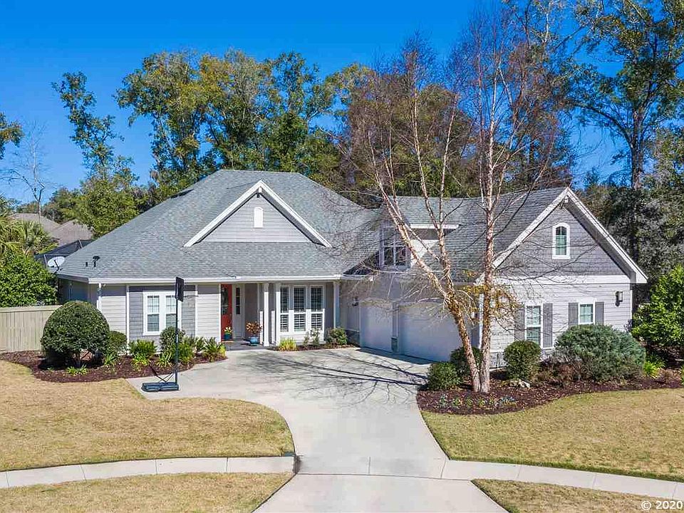 BETTER THAN NEW!! This Warring built, salt water, pool home features a stylish, contemporary interior, a gourmet kitchen w/ solid wood cabinetry, granite counters, stainless appliances, gas cooktop, & spectacular island. Highlights include hand scraped,wood flooring, high ceilings with stunning wood and tray detailing & a picturesque gas fireplace. Exceptional master suite w/ dual closets, dual sinks, huge shower, & Kohler tub w/ deco tile surround. Energy efficient gas tankless water heater, low-E insulated windows, & high efficiency heat pump. Exterior features include a spacious lanai with paver patio, summer kitchen with stone surround, privacy fenced backyard with multi-story treehouse, cultured stone at front elevation, & automatic irrigation system with timer & rain sensor. Additional highlights include a 3-car garage, spacious laundry, incredible cul-de-sac location, great schools, convenient Publix shopping and an easy commute to UF and Shands!