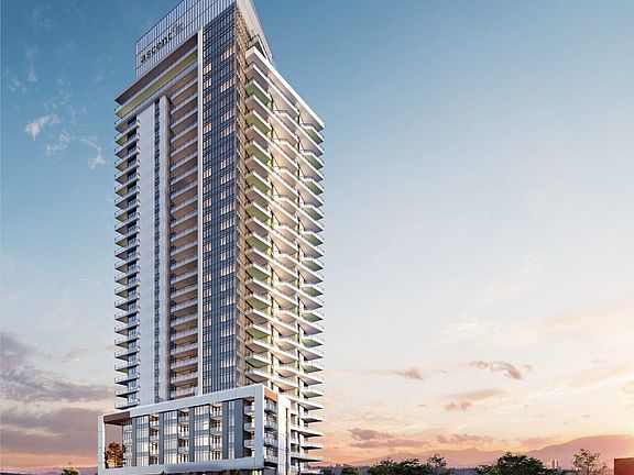 Elevate your lifestyle at Ascent by Maple Leaf Homes, ideally in central Surrey. This exquisite 589 sq ft inside the unit, with an expansive 139-414 sq ft balcony, features 1 bedroom and Den, 1 bathroom, and high-end finishes, including Fulgor Milano appliances and wide plank laminate flooring. Enjoy modern comforts like air-conditioning 1 parking spot, and 1 locker. Experience unparalleled amenities, including a fitness center, yoga room, social lounge, rooftop terrace, and co-work space. With easy access to Surrey Central Mall, SkyTrain, SFU, UBC, Kwantlen, Walmart, and Save-On-Foods, this is city living at its finest. Completion anticipated late 2024/early 2025.