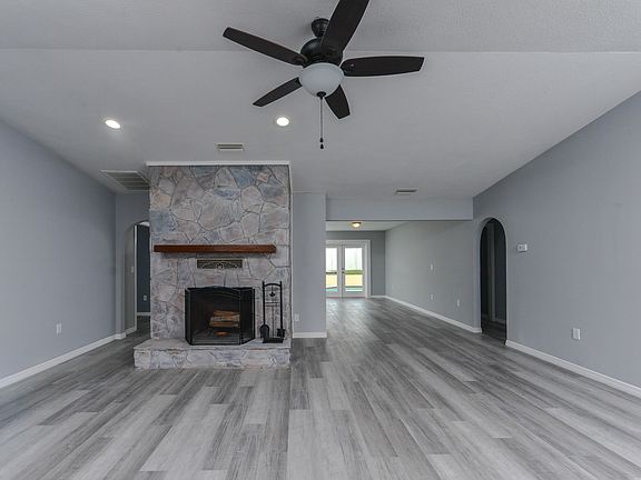 Everything has been touched with updates inside this home. When you walk in the front door you are greeted by a wood burning fire place with stone inlays surrounding it and a beautiful mantle to display your favorite photos right in the living room where you can relax the fire. Calming colors inside combined with the beautiful grey flooring enhance your enjoyment of this wonderful home. Elegant arched walk ways bring you to the updated kitchen where you will find a breakfast bar, granite counter tops, stainless steel appliances and a subway tile back splash to pull it all together. Once outside you have a covered porch with a fan overhead for a nice breeze. The inground pool is large enough for the whole family to enjoy with a spa for an added bonus. Fenced in yard for privacy!