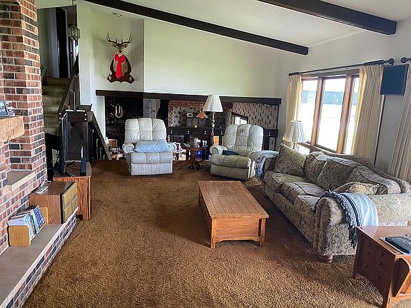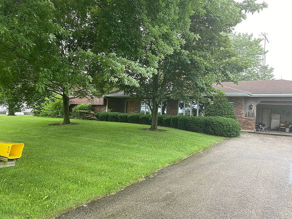 Small town living. Home on 5 Acres. 3 Bed, 3 Bath, Open Concept. 2 Brick Fireplaces, Family Room, Living Room, Dining Room, Kichen with large eating area, Laundry Room, Rec. Room, and Basement. Mature trees. 60x120 Morton Bldg. with Airplane Hanger Door on one side. Additional 2.5 car garage with automotive lift. 40x80 Quoncet shed and grain bins for additional income. Indian Creek School District. 1 Mile to town. 3 Miles to Shabbona Lake State Park, 15 min to DeKalb, 40 min. to Rockford, 45 min to Naperville.