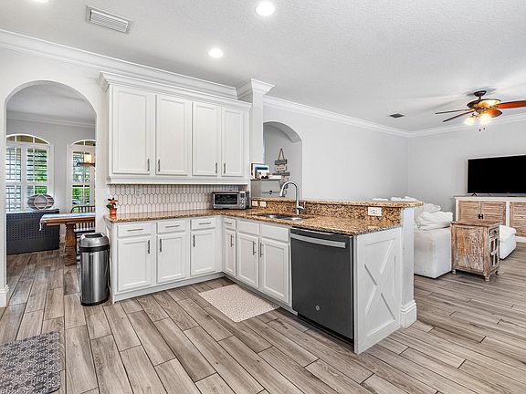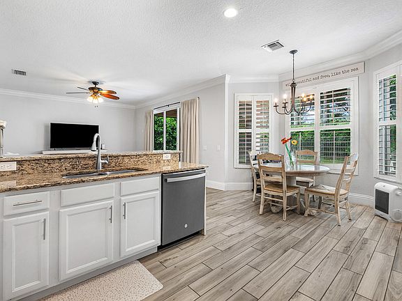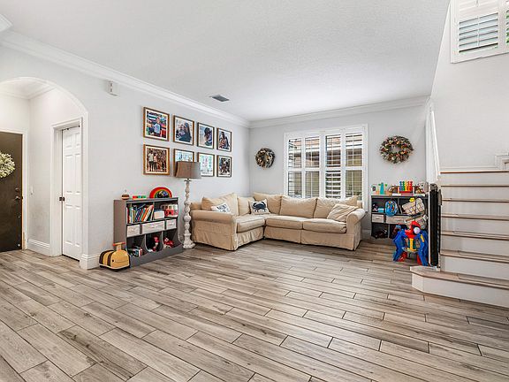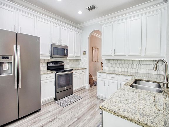 This Canyon lakes home has been completely remodeled. From the huge extended paver patio with fire pit to the plank tile floors throughout the downstairs, and brand new LVP floors upstairs. The kitchen features white 42 inch cabinets with crown &granite tops marble tile backsplash. The home also features 7 1/4 inch baseboard and crown throughout the home. Downstairs has all plantation shutters &LED recessed lights. All bathrooms have been completely redone with new cabinets, tile, toilets, quartz tops, faucets, etc. The master bath has a spa like feel with herringbone pattern marble tile, dual shower heads, double vanity with standalone tub. Newer AC, water heater, air purifier through HVAC. This home is move in ready & the community has luxury amenities: large pool, splash pad, 3 parks!