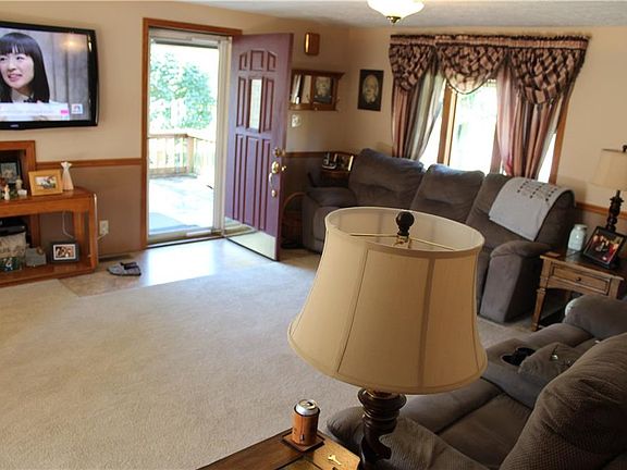 Three Bedroom, 2-Full bath manufactured home on a double lot. Spacious family room open to dining area. Dining area with atrium door leading to wood deck. Kitchen offers oak cabinets, and appliances to remain. Master bedroom with large closet, and full private master bath. 13x24 wood deck with privacy fence. 2-car detached garage has concrete floor, and electricity. Mini barn. Close to schools and shopping.
