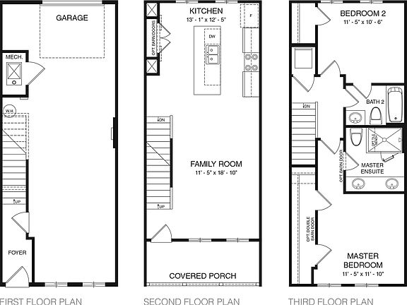 The Middleton floorplan features open concept living on the middle floor with an oversized kitchen island and a covered porch. Chefs and entertainers alike will enjoy the spaciousness of the kitchen and connected family room, and the built-in kitchen pantry offers an abundance of storage. The top-floor offers a private owner's suite and bath with a secondary bedroom and bath for a roommate or guest. The first floor includes a private, 2-car garage.