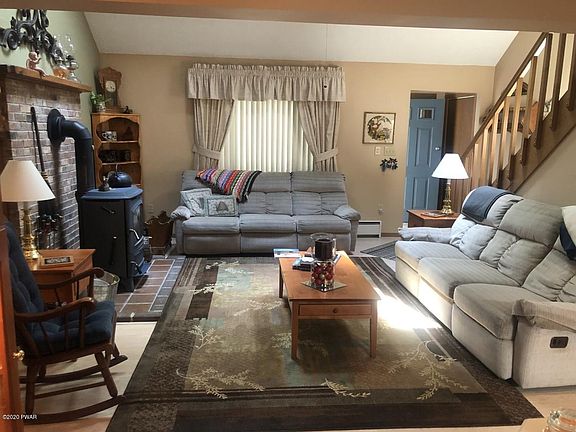 Come to the Pocono Mountains to see this Immaculate kept home featuring 4 Bedrooms, 2 Full Baths, Loft, Kitchen with custom cherry cabinets, Corian Countertops, Breakfast bar, Harmon coal/wood stove in Living Room, Open Floor Plan, 3 Season Room, Back Deck, Double Lot for additional privacy, separate 1.5 car garage with a 24x16 Unfinished Loft that could be finished to your taste. Lake Rights to Crystal Lake, clubhouse, pool and tennis. Make your appointment today.