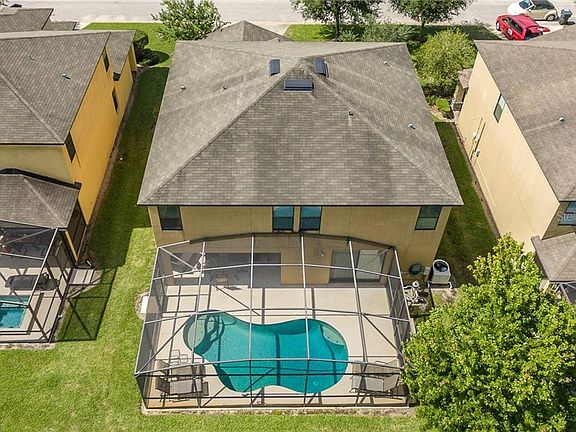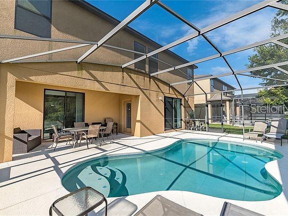 SEARCH NO MORE!!! This 6 bedroom 4.5 bath house is move in ready. Short term lease's approved for any investors thinking about using this property as a income producing property. Minutes from all the major theme parks. This house features an open floor plan with two master suites, formal dinning area and large 1st floor family room with a open kitchen concept and breakfast bar seating. The main floor master bedroom includes his/her walking closets and on suite bathroom with separate tub and shower. Master Suite on the 2nd level also has his/her closets. Enjoy hot afternoon and evening swims in the backyard swimming pool. This pool is enclosed with screened porch and has the option to heat the pool for use throughout the entire year. This 2 car garage has ceiling fans and a portable HVAC system for the current use of a gaming room. On the second floor you have access to 4 more bedrooms and another family room with 3 full bathrooms for private use for all guest. Furniture does not convey. Bring all offers this amazing home will not last long!!!