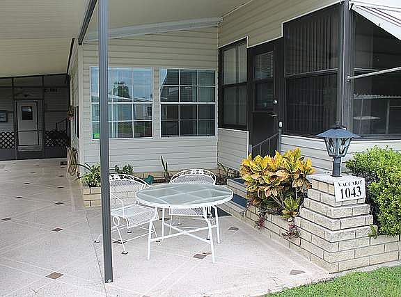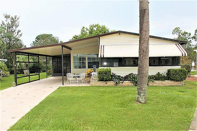 This 2 BR 2 BA plus Den is located in the back of 55 plus park, nice backyard, perfect for flower garden, rear patio, extended shed 12 X 16, carport, side lanai, laundry inside, huge master suite, double vanity, jet garden tub, plenty of storage here. Wood burning fireplace, kitchen island cooktop, plenty of cabinets, desk area, eat in space, Front Florida Room 12 X 18 and covered patio, and many more awesome features.