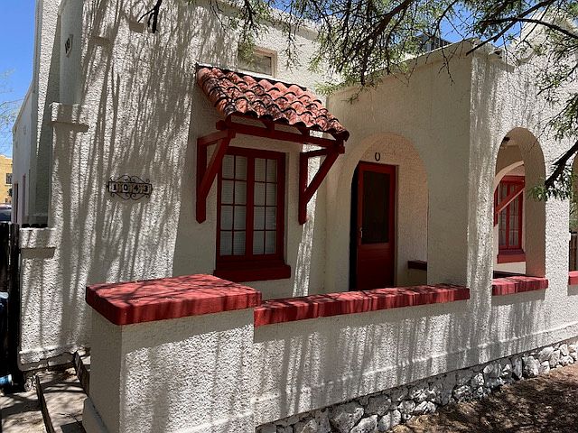 One bedroom duplex (west side). Historic 1931 south facing, off street parking in back. Central A/C and gas furnace heat. Eat in kitchen, on site laundry. Historic duplex. Modern touches in the kitchen and bathroom. Wood floors, no dogs. Block and a half south of the UofA. Free shared laundry on-site. Tenant pays gas and electric, landlord pays water, sewer, garbage and recycle.