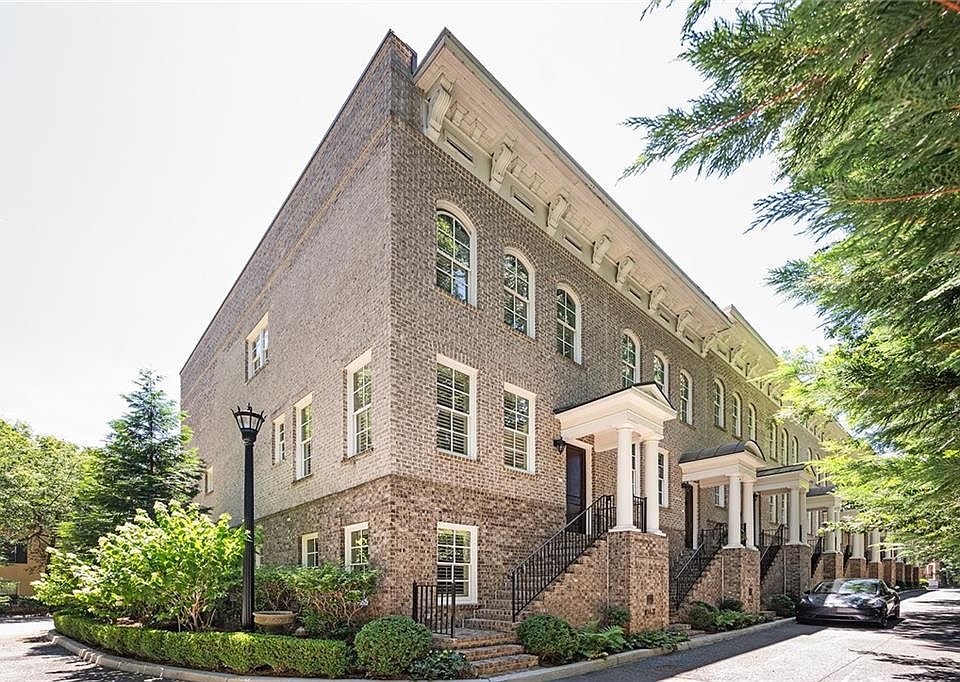 This stunning three-bedroom, three-and-a-half-bath brownstone built by Monte Hewitt is a unique find in one of the most sought-after locations in Brookhaven. Situated in a gated community off a private street you'll be close to the vibrant lifestyle offered by the Buckhead and Brookhaven neighborhoods without having to live in the hustle and bustle of it all. As you step inside, you'll be greeted by sophisticated appointments and thoughtful details throughout including pocket doors, elegant crown molding, plantation shutters recessed lighting and hardwood flooring. The kitchen is a chef's dream, with a seated island, quartz countertops, Thermador stainless appliances, paneled refrigerator, custom cabinets with handy pull-out drawers and double ovens all flowing seamlessly into the open living area. The fireside great room has a beautiful coffered ceiling and double French doors to a private balcony with low-maintenance trex decking. The primary suite lets the natural light in through arched windows and a luxurious bath with soaking tub, double vanities, a seamless glass shower.and walk-in closet is a welcome retreat. Each bedroom has its own stylish bathroom and custom finishes. Fine dining, boutique shopping and entertainment are around the corner at Brookhaven Village and the Phipps Plaza and Lenox Mall areas. Minutes to GA400, I85, MARTA and all major throughfares. Two car garage. Ashford Park Elementary School