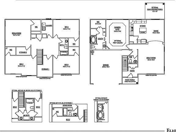 Eliot floor plan has plenty of space for the whole family with 4 bedrooms, 2.5 bathrooms and a bonus room. ALL SECONDARY BEDROOMS ARE HUGE! Optional Jack and Jill bath available.