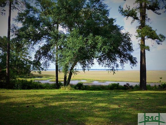 BACK YARD VIEW OF SOUTH NEWPORT RIVER! Waiting for your boat and toys!! This home is waiting on a family to have a beautiful setting with waterfront views in the oversized back yard for get-togethers and cook-outs or fish frying. An oversized garage with a 14x12 enclosed room for over-flow guests with AC even! The home has oversized windows all along the back of the home with a deck to take in the sights of boats passing by. Views of Sapelo Sound and St. Catherine's. A golf cart ride to the boat hoist,dock, club house, pool, picnic area, tennis courts and horse stables. Enjoy this home full time or on your weekend get-aways! Plenty of open living space for large get togethers! Covered front porch space for your rocking chairs and side entry from the garage. Come take a look!