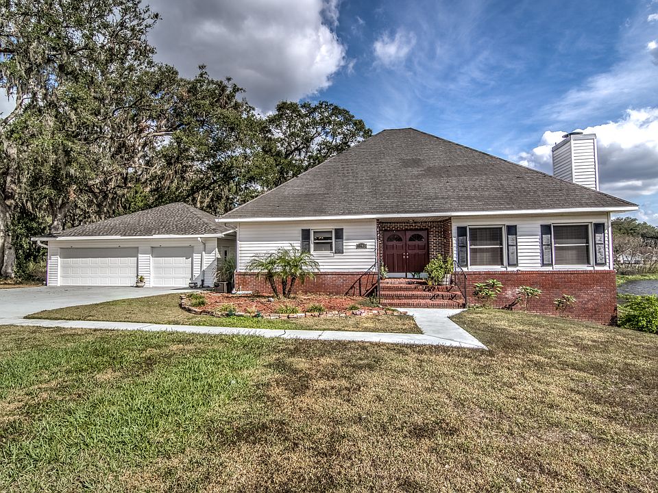 Hidden Lake Estates is a quiet neighborhood of well kept homes surrounding a small peaceful lake. If you've ever dreamed of coming home, kicking your shoes off and dropping a line in the water, this is the place for you. Custom built SMART home with a BASEMENT! A rare find in Florida. Don't let the front view fool you, this home offers so much behind it's double door entry. The main floor offers 3 nice sized bedrooms, 2 full baths, living room w/fireplace, dining area and well appointed kitchen with large island, pantry and 42" solid wood cabinets. Master bath has separate shower and Jacuzzi tub with marble floors. You will find the real treasures this home has to offer, when you descend the stairs to the walkout basement featuring 10' ceilings. So much room to entertain or enjoy family time. You will find the large family room/game room with French doors, which lead out to an 18' x 46' enclosed porch, overlooking the lake. Also, you will find the 4th bedroom, large enough to be a 2nd master, a bonus room, steam sauna, theatre with reclining stadium seating, 11' screen and surround sound. The full bath downstairs, is all slate with a large walk-in shower, featuring multiple side sprayers and rain shower head. Laundry is currently down, but could easily be returned upstairs to the pantry. You're not done. Outdoors, there is plenty of room to set up yard games or a garden. You can relax among the large oaks and enjoy the koi fish in your own personal fish pond or on a chilly night sitting around a nice fire at the fire pit. The oversized garage has plenty of space for a work area. The long driveway offers plenty of parking for your family, guests or big toys. All of this on a little over 1/2 acre with 153' of lake frontage and a secluded quiet back yard. Close to shopping, golf course and less than 2 miles to boat ramp to Lake Gibson, a 483 acre lake. So much home for the money. NO HOA, CDD!!!
