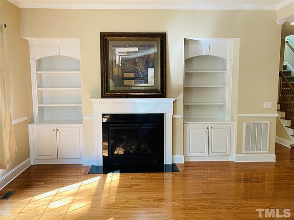 Stunning 4bd 4 ba in great Cary location! Gourmet kitchen w/ center island, prep sink, solid surface counters. SS appliances w/ dble wall oven/microwave. Hardwds on 1st flr includ. formal DR, large FR w/ built ins + gas fireplace, office/study, keeping rm. Mud/laundry rm, large deck on 1st flr. 2 staircases up to huge MBR w/ dual vanity, walk ins, bath/sep shower, game rm, 2nd bedrms w/ Jack & Jill bath. 3rd flr theater rm prewired for media. Lots of storage. Minutes to SAS, MetLife, RTP, RDU & major hwys