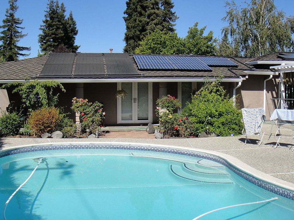 Stunning remodel in Mission Ranch in Mission San Jose. 4 bedrooms, 3 baths, 2313 sf (per appraiser) on just under 10K sf lot. Terrific curb appeal. Slate tile on the front porch. Oak hardwood flooring, crown molding plantation shutters, dual-pane windows Bose speakers. Stylish kitchen with Galaxy Professional Series stainless appliances. Formal dining room with wood-burning fireplace. Step down family room with French doors that lead out the resort in the backyard. Sparkling pool, attractive trellis. Elegant master bath and bedroom remodel. Hall bath includes jetted tub! Mirrored doors and closet inserts.A/C. Newly installed 3KW solar PV system and solar attic fans!