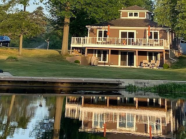Come and enjoy all that Lake George has to offer in this beautifully remodeled water front home. Large maintenance free deck overlooking the water with a year round dock and fully finished walkout basement with a pool table rec room and two bedrooms. Upstairs' open floor plan with two tastefully remodeled bathrooms (2022) with custom showers, new kitchen countertops, sink and appliances (2022), new furnace and AC unit (7/2021). All new siding, maintenance free deck, new concrete patio, new sliding doors on upper & lower floors (2018). Plenty of storage with the 2 car garage and add on storage shelter for your mower and tools. THE WORK IS DONE, simply come and enjoy life! This is a must see property for Lake George living!