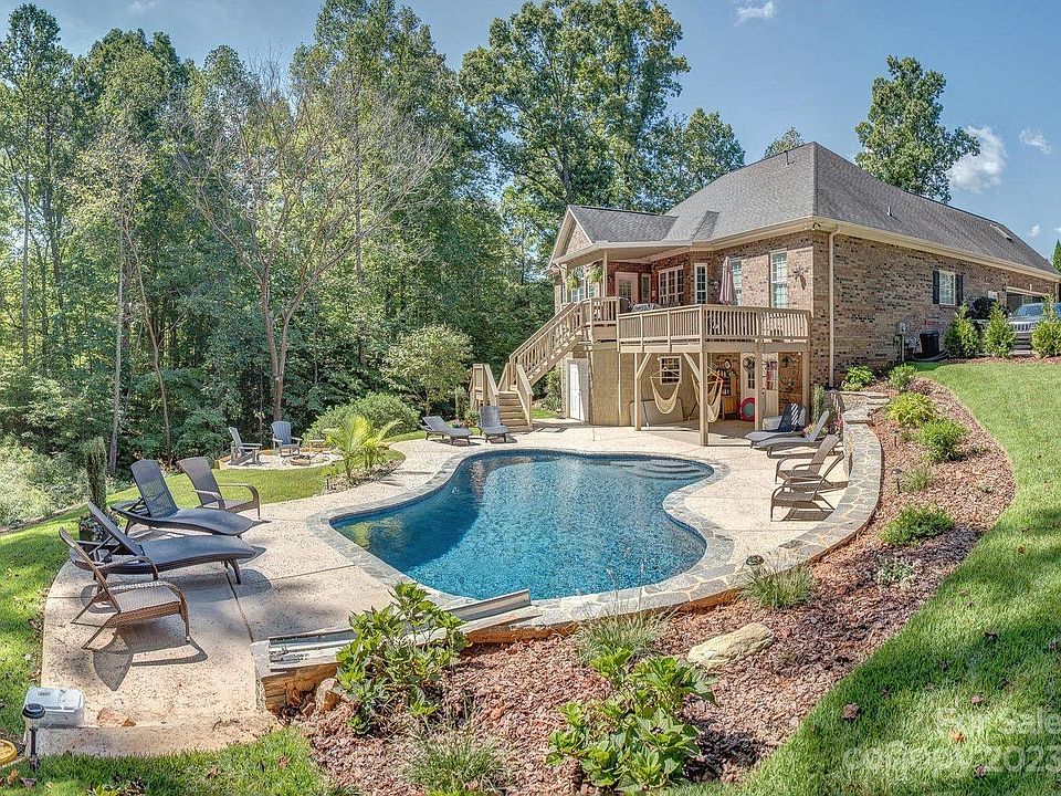 RARE FIND! Beautiful custom built w/full finished basement on over 2.6 acres with a private wooded backyard! Many custom features include gorgeous 2 sided stacked stone fireplace, sunroom, hardwood floors, soaring ceilings all over mainfloor, sideload garage & parking for 4 plus vehicles. Notice the beautiful millwork & built-ins. Covered back deck perfect for entertaining. Large storage room under the deck. Custom finished basement with 9 ft ceilings is a complete second living quarters with its own entrance. Bedrms & bathrms, living room, fantastic kitchen, laundry & private covered patio! Relax in the evenings while sitting by the pool. Enjoy the deer around dusk in your woods behind the pool. If you're looking for privacy & land while still being in an upscale neighborhood then this is the place for you. Second living quarters is a huge bonus & could even be rented out. Have a camper to plug in? No problem, hook up for that also.