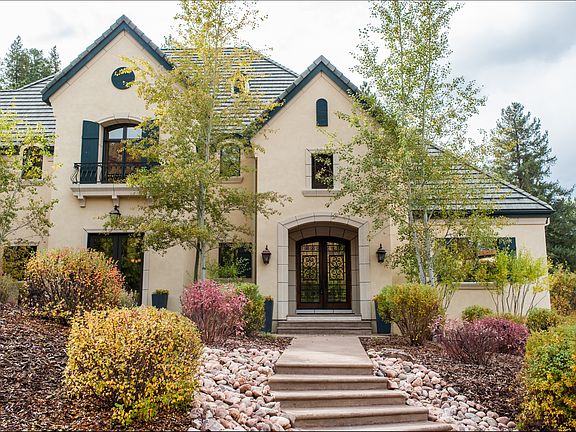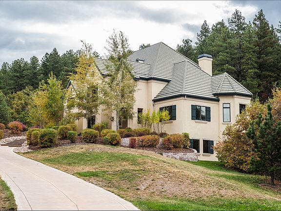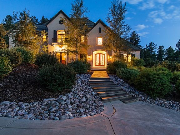 This dramatic 2 story home is located in the heart of Castle Pines Village on an exceptionally quiet, private site bordering a wildlife preserve. The attention to detail in this home is exceptional; custom designed iron work, curved staircases, copper accented dome ceiling, custom knotty alder cabinetry, birch hardwood floors & handmade custom tile. The first floor boasts a formal living and dining room, great room with an incredible 4-sided fireplace, and a magnificent library with custom fireplace. The gourmet kitchen features a professional thermador range and refrigerator. The second floor includes the master suite which is located at the most secluded corner of the home and features a private balcony off the bath with mountain views! The lower level, accessed by the elegant curved staircase features 2 additional guest suites, a wet bar & a fireplace. The rec room opens to a private stamped concrete patio..None