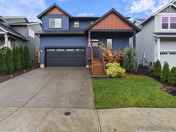 This home is in like-new condition, meticulously maintained, and ready for you to move in. It features a flowing layout ideal for easy living, with a bright and airy kitchen that opens to the dining room. Picture yourself cozying up next to the propane fireplace on chilly winter nights! All three bedrooms are located upstairs, along with a convenient separate laundry room. The primary suite includes a spacious en-suite bathroom and a generous walk-in closet. Step outside into your large, fully fenced backyard, which is perfect for creating your own little oasis right in the heart of Estacada. Enjoy the convenience of being within minutes of everything this charming town has to offer! Welcome home!
