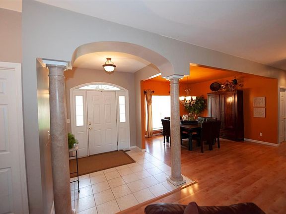 This beautiful corner atrium ranch home sits on 4.5 acres in the quiet hills of Robertsville. Gorgeous lake view with detached 20x30 metal building with concrete floors and automatic overhead garage door. The landscaping is lovely with perennials that have blooms of all different varieties throughout the year. The 3 bedroom 3.5 bath home has 3 car garage, columns to the entry with archway entrances throughout, 9 ceilings, open floor plan, partially updated kitchen with new appliances, and master bedroom suite with coffered ceilings. The lower level is mostly finished with a wetbar and large entertainment area.