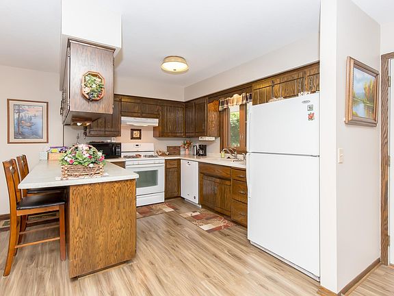 Wonderful 4 bedroom, 2 bathroom rambler on corner lot in a sought after neighborhood! Open floor plan, 3 season porch, large bedrooms with 3 on one level, gas fireplace, patio, mature trees & over-sized 2 car garage. Newer LVP, windows, furnace, water heater and A/C. Ready to move in and enjoy!