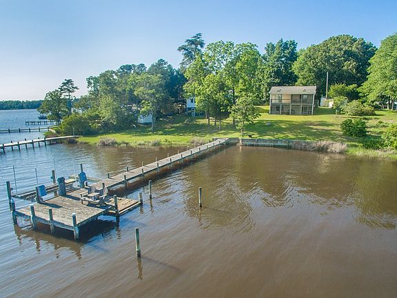 Admire the amazing views from this Charming River Cottage on The Piankatank situated in sweet waterfront community of Point Anne. Entertain family and friends from the double waterside screened porches and enjoy fishing and crabbing from private dock with boat lift. Inviting kitchen opens to great views from Living Room and upper waterfront screened porch. One of two bedrooms opens to spacious waterfront covered deck. Full unfinished basement has great square footage potential for guest quarters and or additional living space. This is a NO FLood Zone location and basement appears to be nice and dry. HUGE potential here !!!