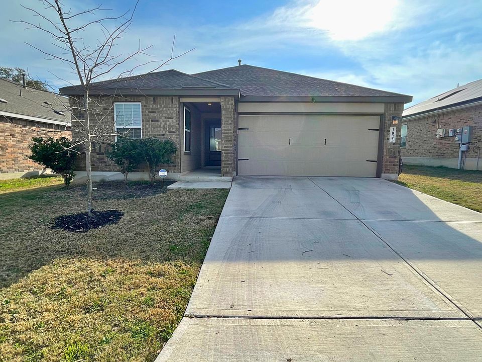 Situated within a secure gated community, this charming single-story residence stands out for its exceptional features. Upon entering this delightful home, one is immediately struck by the custom woodwork and shelving that adds a unique touch. The kitchen boasts granite countertops, complete with a breakfast bar, stainless steel appliances for gas cooking, and ample cabinets adorned with custom knobs. The kitchen seamlessly opens to both the dining area and family room, fostering a connected living space. The home features a large backyard with firepit and outdoor seating area for entertaining. A covered patio further contributes to the outdoor allure. The master bedroom is separated from the other two bedrooms and has generously-sized walk-in closet, double vanities, and an impressive walk-in shower. Additional enhancements include a sprinkler system, water softener, tankless water heater, and an epoxy finish on the garage floor. Don't miss the opportunity to tour this exquisite home.
