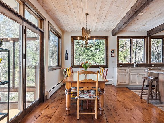 Discover this charming property in the highly desirable Robinson Springs neighborhood. Tucked into a peaceful setting that includes a large pond with a gently flowing stream, mature woods, and a spacious yard with an in-ground pool. This home has so much to offer for year-round enjoyment in Stowe. The two-story fireplace and cathedral ceilings on the main floor create an open and inviting atmosphere. Enjoy a convenient first-floor primary bedroom with Green Mountain views. Just off the kitchen, the three-season porch is an additional space to relax and unwind. With four bedrooms, a walkout lower level, and a detached two-car garage, this home provides both comfort and practicality. A short distance to Stowe Mountain Resort and Stowe village, this property brings the quintessential Vermont lifestyle right outside your door with the Robinson Springs amenities that include tennis courts and an extensive trail network.