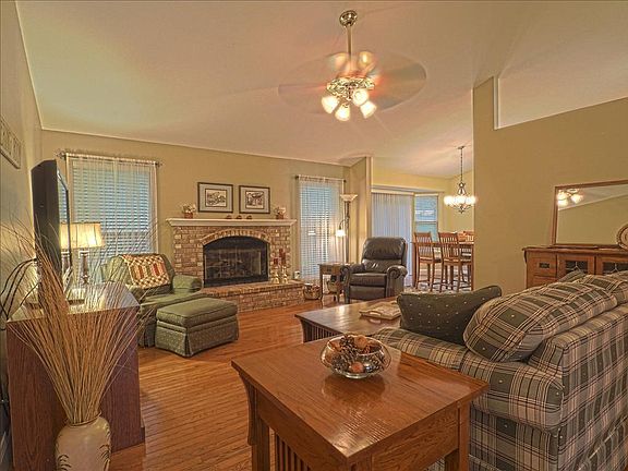 Lovely 3 Bedroom Ranch with Open Floor Plan. Covered Front Porch and Beautiful Custom Front Door Leads You to the Inviting Entry Which Opens to the Great Room With Gas Fireplace. Light and Bright Kitchen Boasts 42 in Cabinets, Breakfast Bar and GE Profile Stainless Steel Appliances. Spacious Breakfast Room Opens to Patio and Beautiful Private Yard. Master Bedroom Suite with Walk in Closet, Private Luxury Bath with His & Hers Vanities,and Separate Tub & Shower. Both Additional Bedrooms are Good Size and All Have Ceiling Fans. Updated Hall Bath and First Floor Laundry. Vaulted Ceilings, Gleaming Hardwood Floors and 6 in. Baseboards Through-Out. Basement has Rough in Bath, 2nd Laundry Hook up and is Just Waiting for Your Finishing Touches. This Home has Been Lovingly Cared For and Pride of Ownership Shines Through.