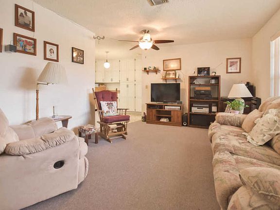Finally, an affordable single family home. True 3 bedroom with 2 full baths. The third bedroom can also be used as an extra living room or be easily split and add an additional room. Circular drive and extra long driveway a sure bonus. Split bedroom floor plan. Sturdy laminate flooring and neutral colored carpeting throughout. Kitchen features amazing cabinet space (you'll never run out) and plenty of counter space. Dining room area opens to covered and screened 20 ft patio. Laundry room with full sized washer/dryer. Storm protection available on windows. Full garage and no homeowner association make this home a rare find.