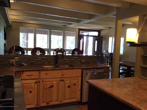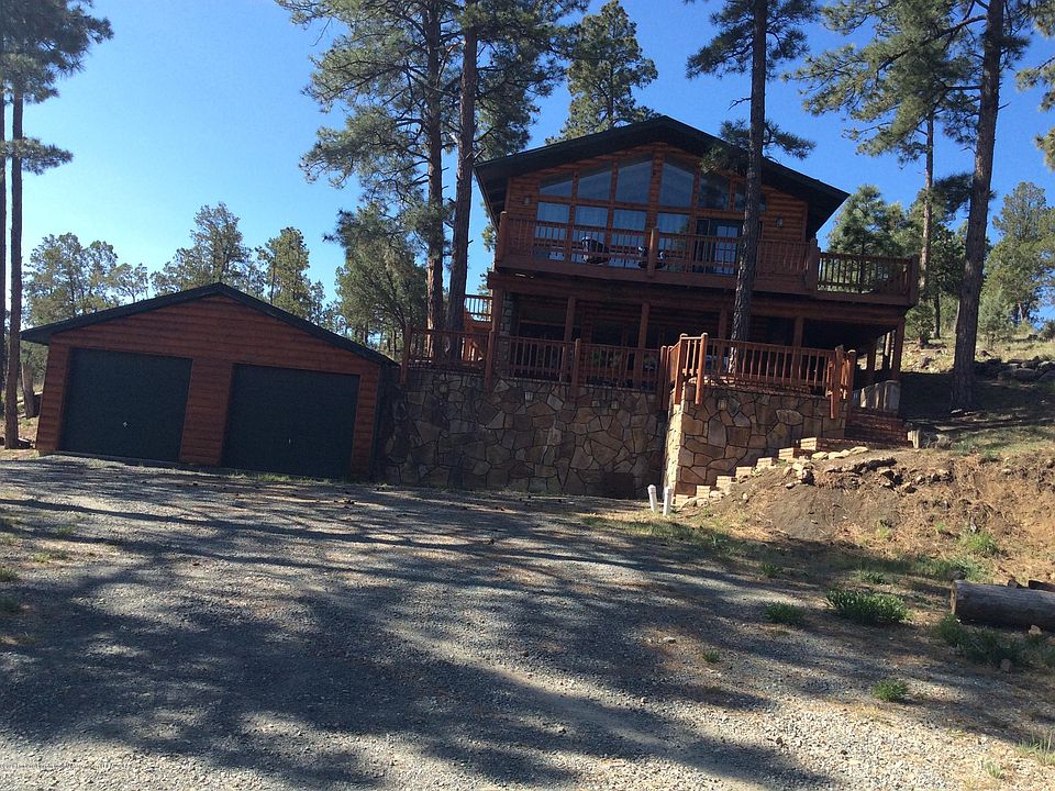 Very nicely remodeled mountain home with fabulous Capitan mountain views from the wrap around decks. This log home has a fresh coat of stain on the outside and new paint on the inside. Tile floors, laminate wood floors and granite counter tops throughout. Chefs kitchen delight with sub zero fridge and viking gas range. Open floor plan with stacked rock electric insert fireplaces in living room and master bedroom. 2 acres cleared to forest standards. Currently in a rental pool and has great rental history. Netted over $30K last year. Just minutes from Ruidoso. Don't let the address scare you, the house sits off the road enough that most people don't even know it is there. The circular driveway brings you to the garage or you can also drive up top to a level entry.