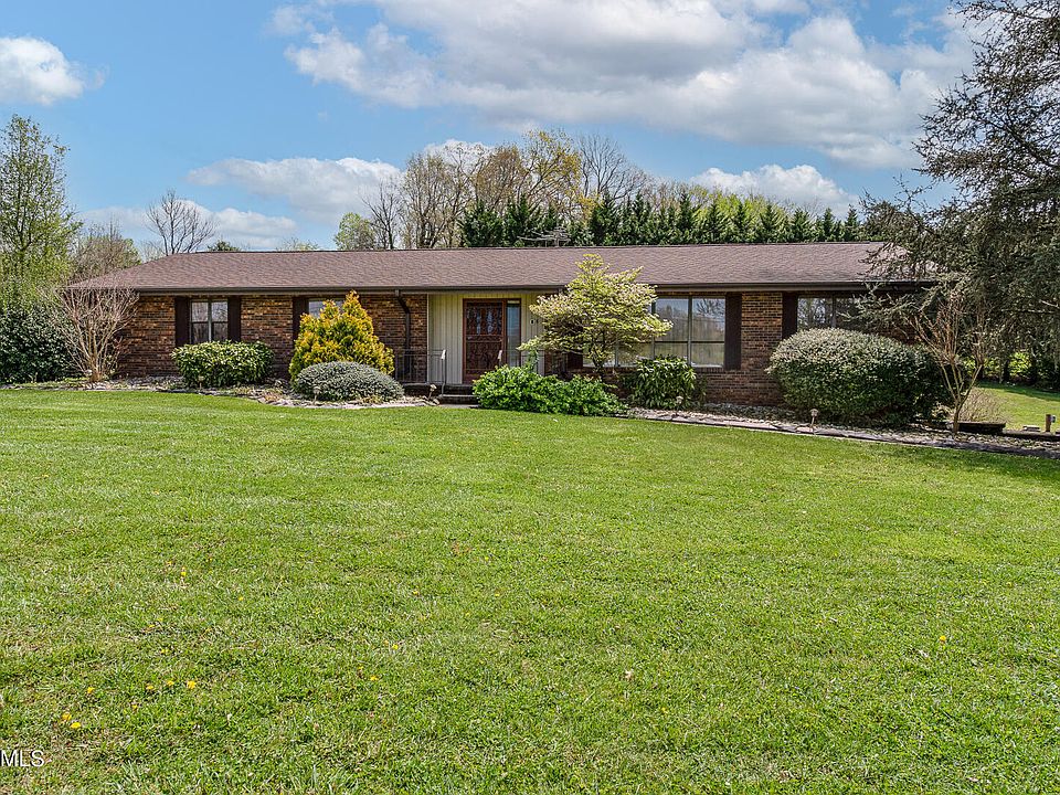 All brick basement ranch on 1.5 Acres in Alcoa City Schools. Main level boasts 3 bedrooms and two full baths, formal dining room, living room open to kitchen with fireplace, and formal sitting room which could be used for a home office or 4th bedroom if closet added. Large open porch and covered screen porch off the back. Master suite has a 417 sq ft addition converting suite to separate apartment or in-law suite. It has it's own kitchen and living room with wood burning fireplace. Suite has a composite decking side private porch as well as access to the screened porch. Bathrooms have been updated with tile and granite tops. Addition has beams, Anderson Doors, & stainless appliances. Basement has a large rec room, laundry/bath, workshop, lots of garage space (large for boat!).