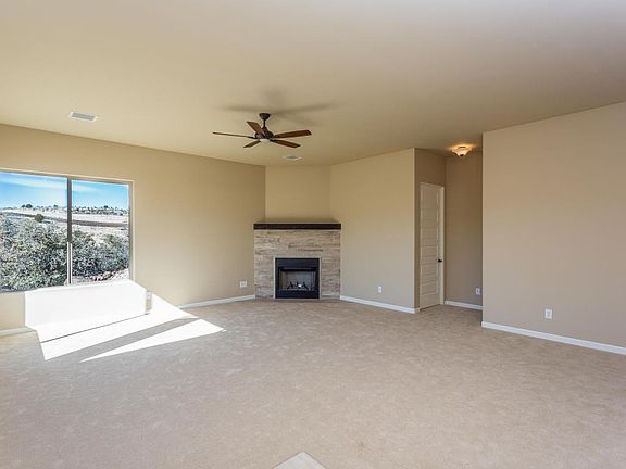 Beautiful new construction now complete and ready for immediate occupancy in highly desirable Yavapai Hills subdivision. Home features open & spacious split bedroom floor plan with great room concept accented by gorgeous gas fireplace. Kitchen boasts large island with under mount composite sink, lovely granite tops, custom vent hood over gas range/oven, tile backsplash, elegant cabinetry with crown moulding, stainless steel Frigidaire appliance package. Generous master suite offers raised height dual vanity, contemporary snail/walk-in shower, compartmentalized water closet, linen closet and large walk-in closet. Other details include comfortable dining area, large laundry room, professionally designed color schemes and lighting fixtures, extensive tile floors, large 3 car garage, CONTINUED
