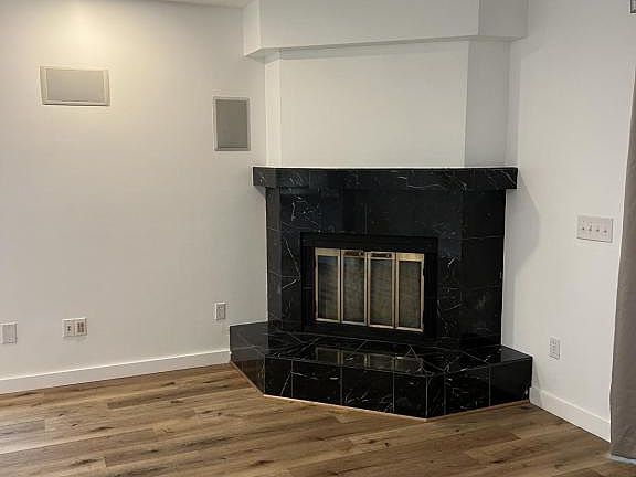 Charming completely remodeled end unit condo located within walking distance to shops and restaurants, close to everything! Open living room/dining room has a corner fireplace with a sliding glass door to walk out onto a private deck and side yard for outdoor entertaining. Second floor you will find two bedrooms and a full bath with a separate vanity area. The main bedroom has vaulted ceilings and showcases a second fireplace. Finished basement with a sauna and walk in shower. One car garage with remote opener. Available June 1st